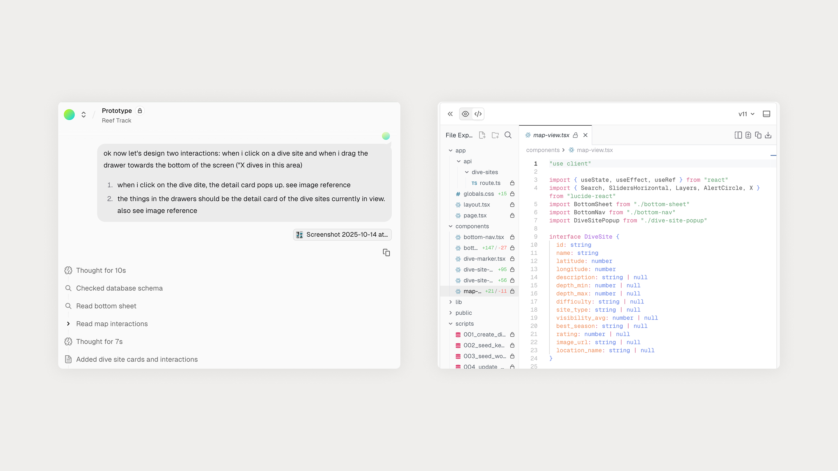 The 3D map was another feature area where things started to break down. Using Cesium to render underwater terrain, we ran into issues where assets failed to load, rendered incorrectly, or crashed the app entirely. These were not problems AI could diagnose on its own. We had to dig through documentation, GitHub issues, and forum threads to understand what was actually happening and why certain configurations were unstable. This work still depended on human judgment. Once the root causes were identified, AI was invaluable for implementing fixes quickly and iterating without friction.