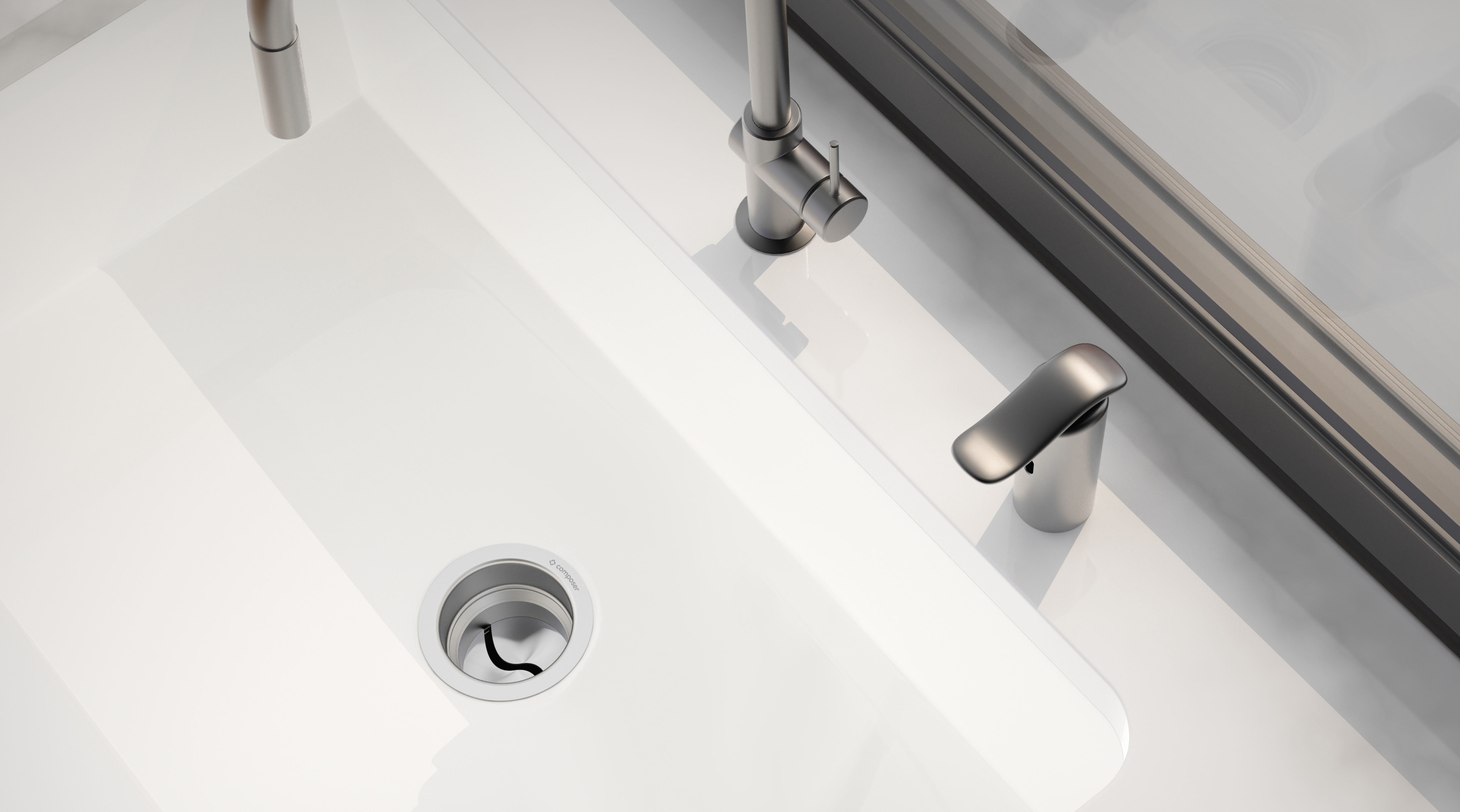 Composer brought a fundamentally different approach: a patented iris mechanism and mechanical lever that protect hands, dampen sound, and give users real control over what enters the drain. Our job was to make that shift feel as clear in the product, brand, and experience as it is in the engineering.